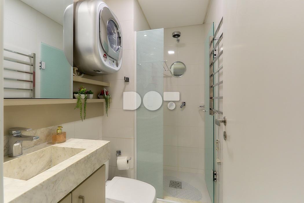 Banheiro com ótimo acabamento e máquina lava e seca já instalada.