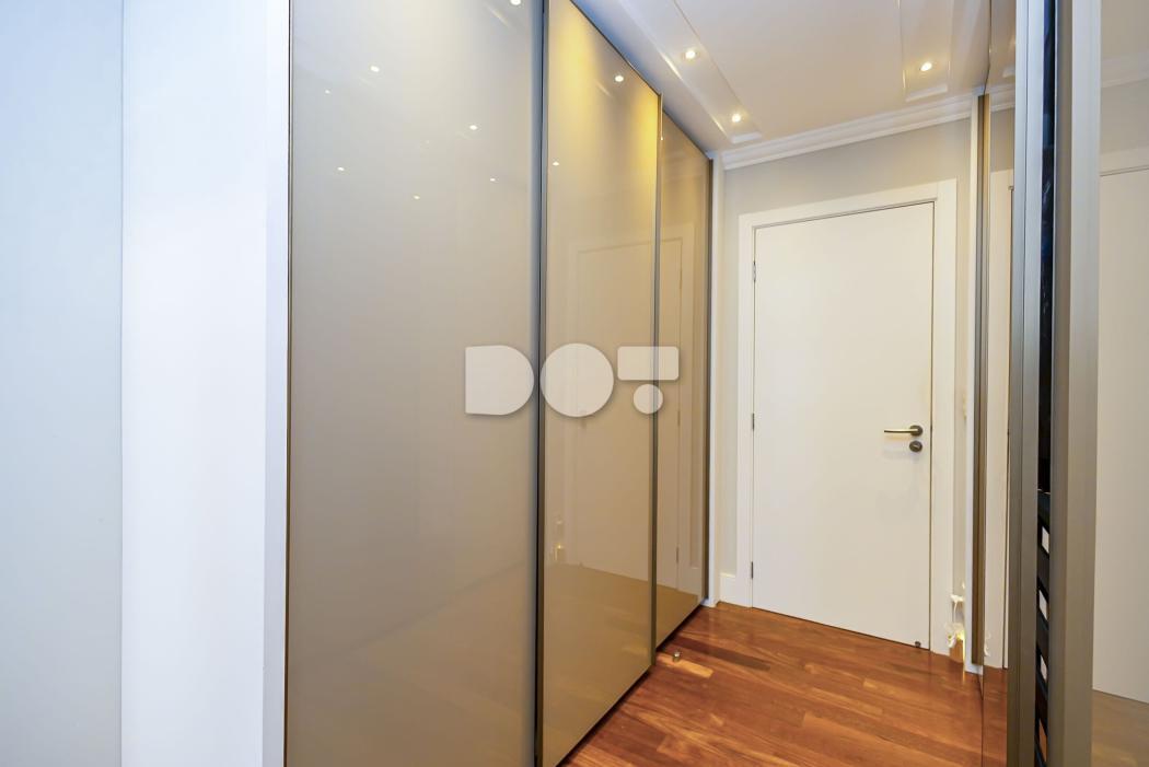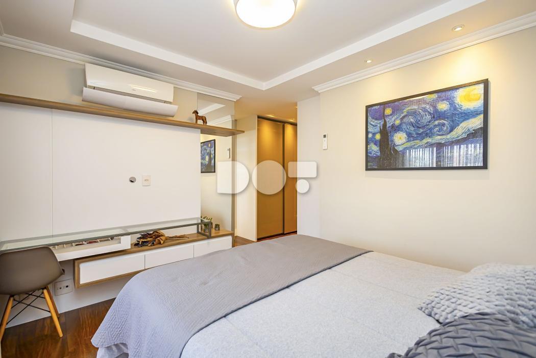 Todos os quartos com móveis planejados de alto padrão, piso em madeira e ar-condicionado.
