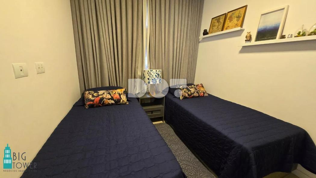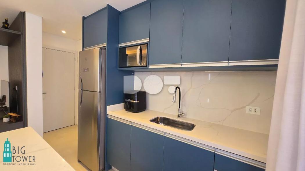 O imóvel está sendo vendido com mobiliário embutido, eletrodomésticos como, geladeira, forno elétrico, microondas, cooktop, máquina de lavar roupas/lava e seca, ar condicionado, camas de solteiro e casal / Box Baú, colchões e cortinas.