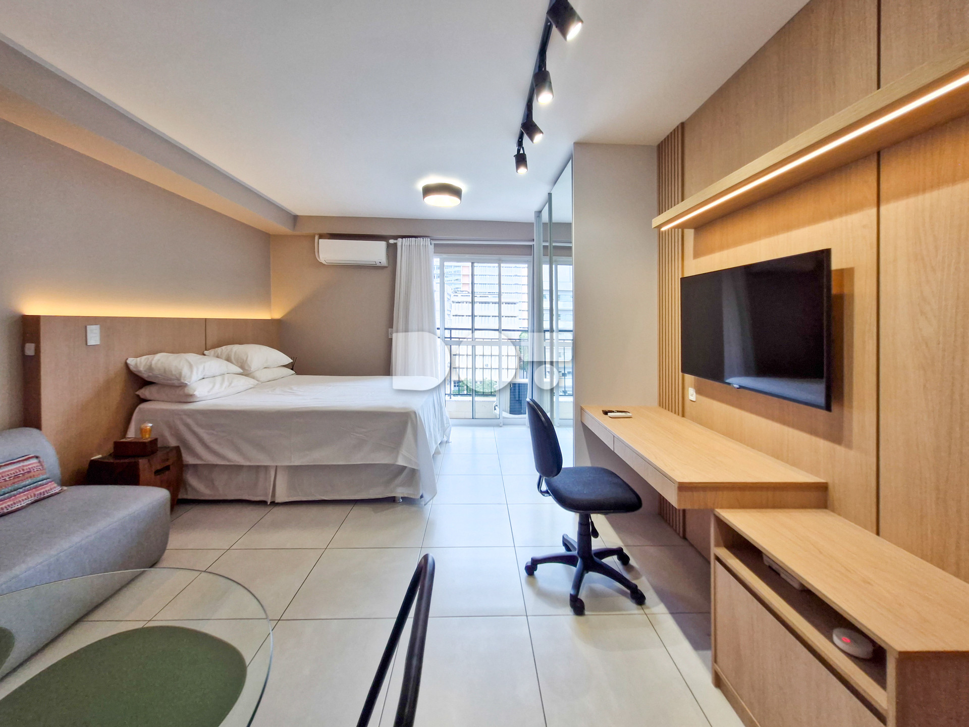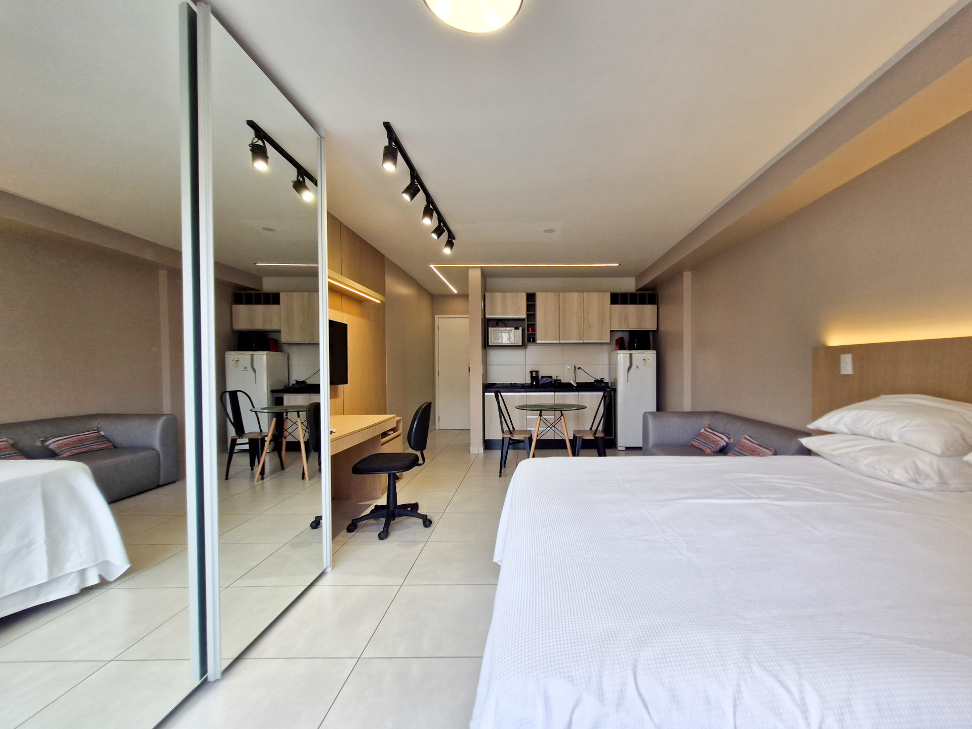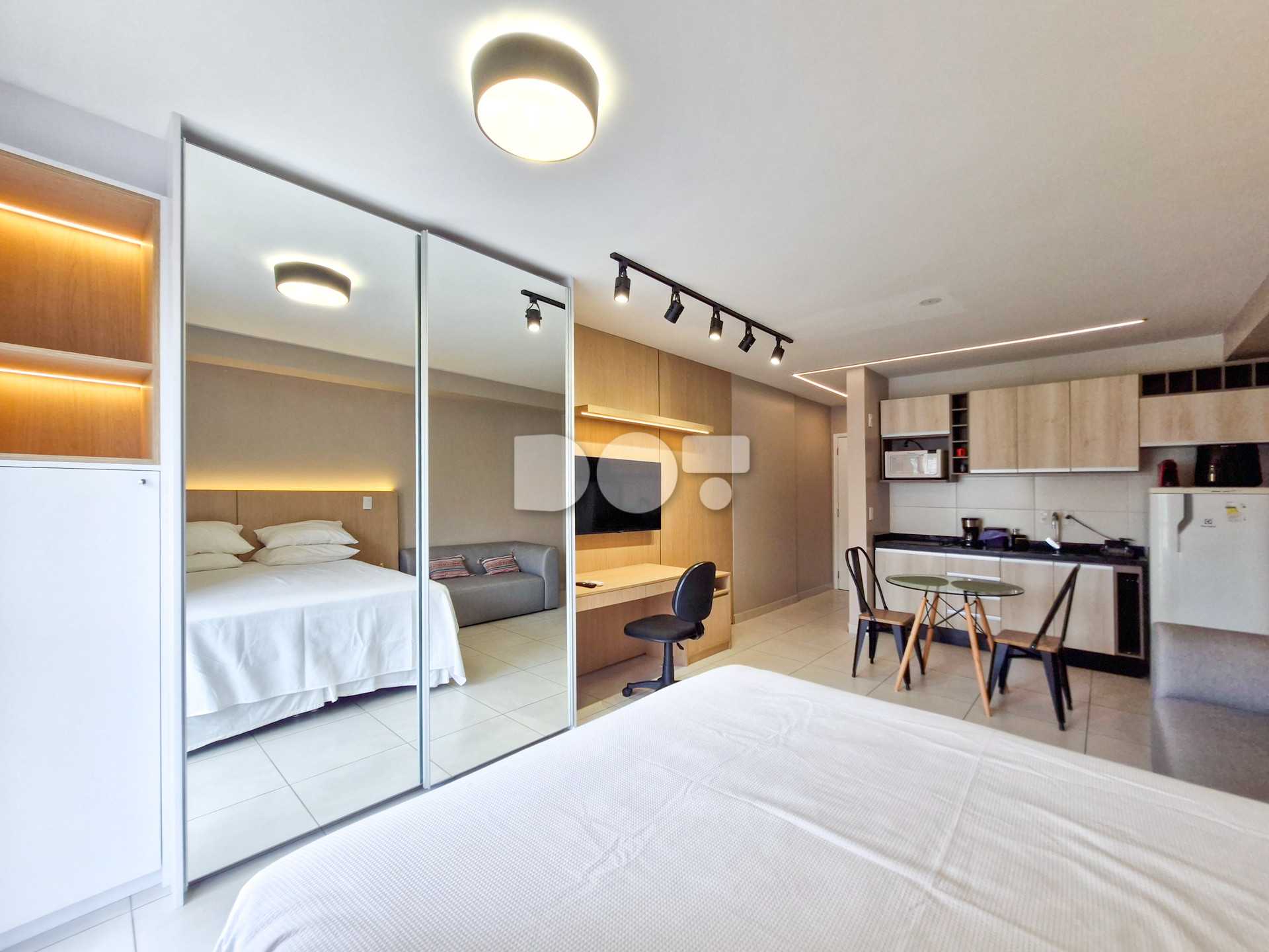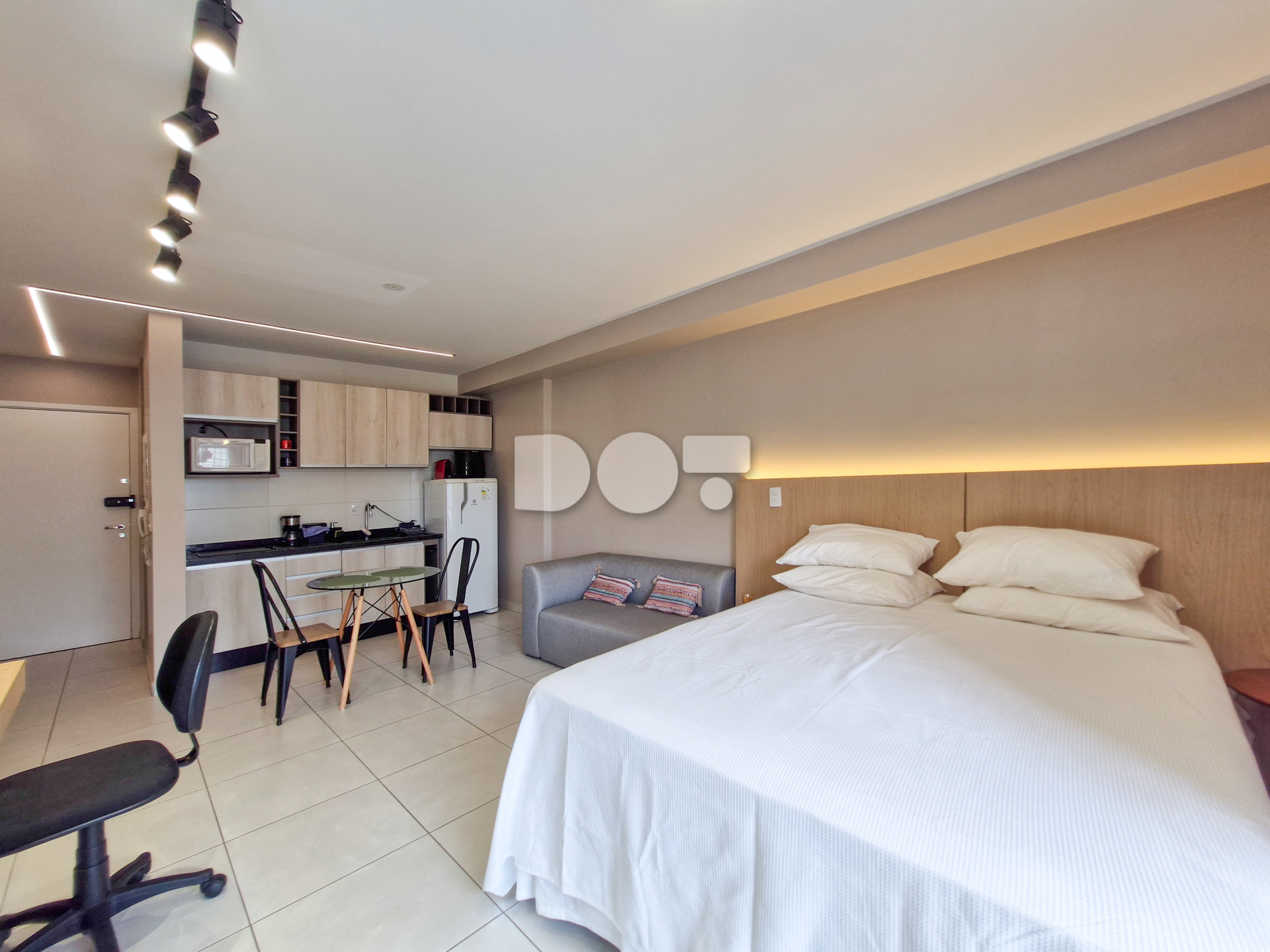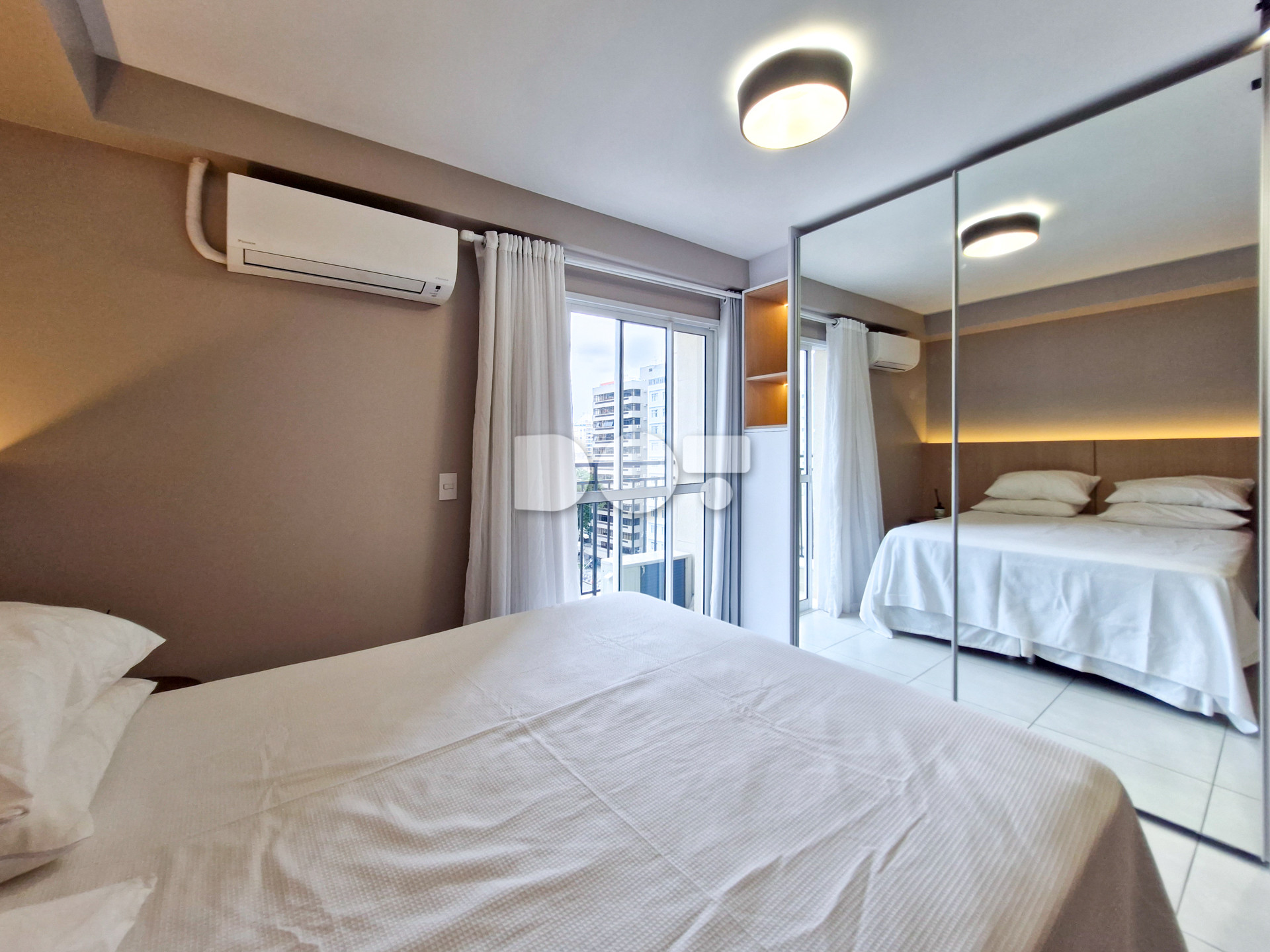 O apartamento foi recentemente reformado e conta com móveis planejados de primeira linha, oferecendo um ambiente moderno e funcional. Possui face leste, garantindo ótima iluminação natural pela manhã. O imóvel dispõe de cama queen size, sofá, TV smart, eletrodomésticos, ar-condicionado Daikin 18.000 BTU, piso em cerâmica e aquecimento de água por caldeira.