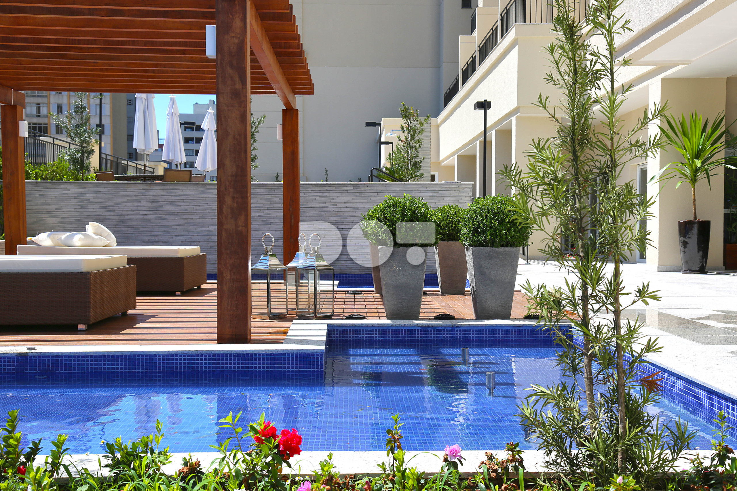 • piscina externa com solarium