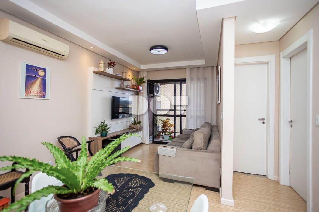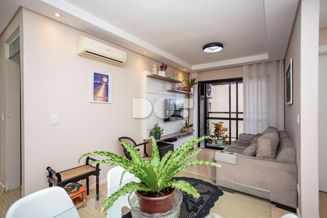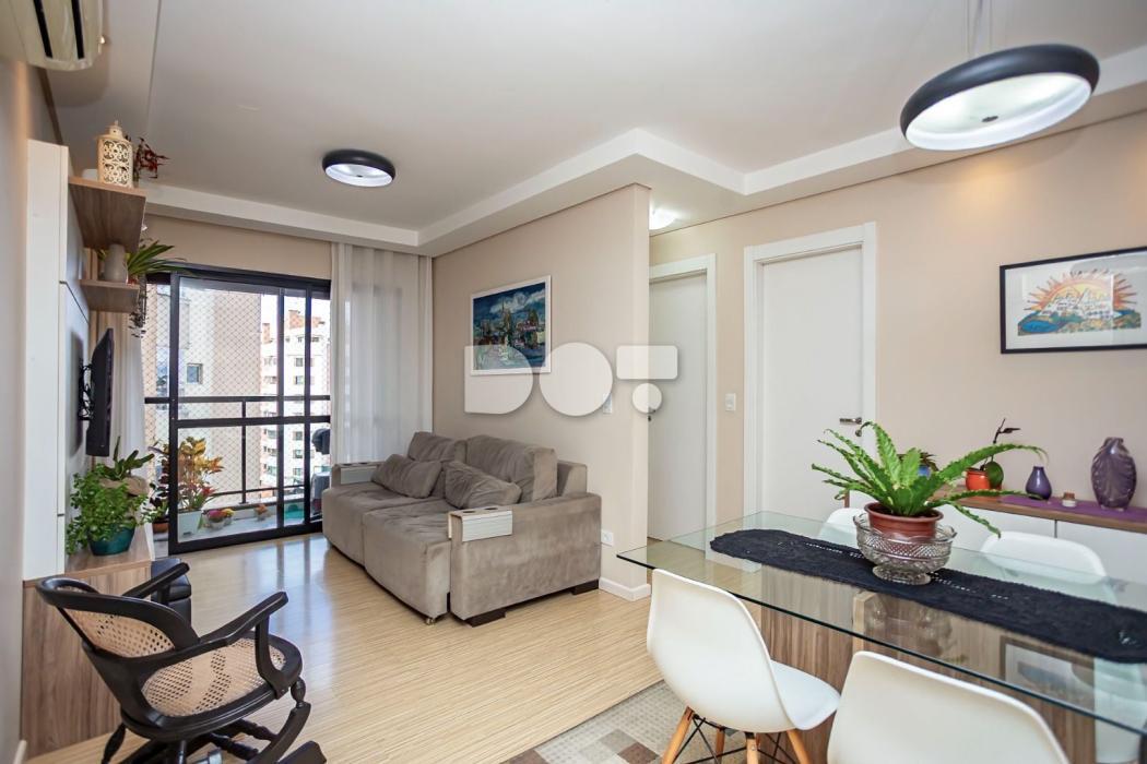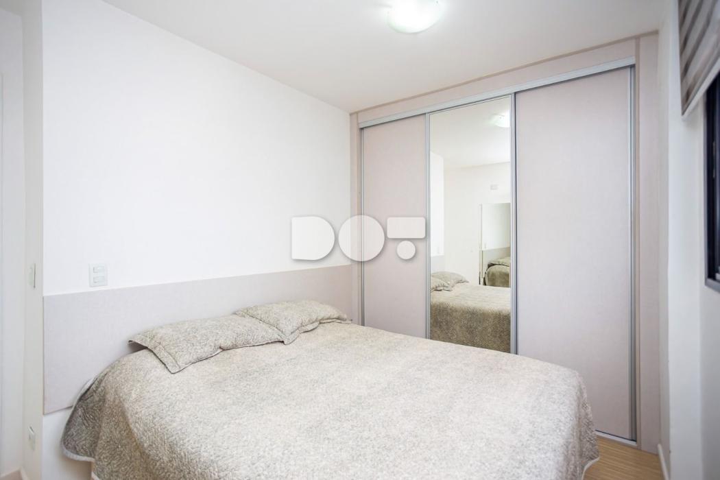 Apartamento 60,32 m² privativos, todo mobiliado com 77,54 m² totais.