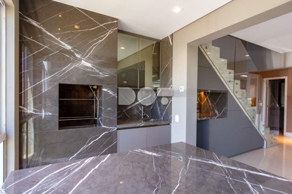 A planta é incrível, e você encontra: sala para 3 ambientes (com pé direito duplo); gourmet com churrasqueira; lavabo; ampla cozinha toda equipada (com marcenaria e eletro); área de serviço; dependência de empregados completa; 4 quartos (sendo 2 suítes) e 3 vagas de garagem!