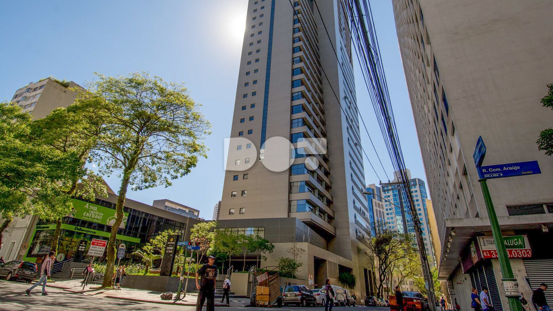 Localização estratégica: no Centro de Curitiba, com acesso facilitado, próximo a vias importantes como Rua Comendador Araújo e Avenida Vicente Machado;