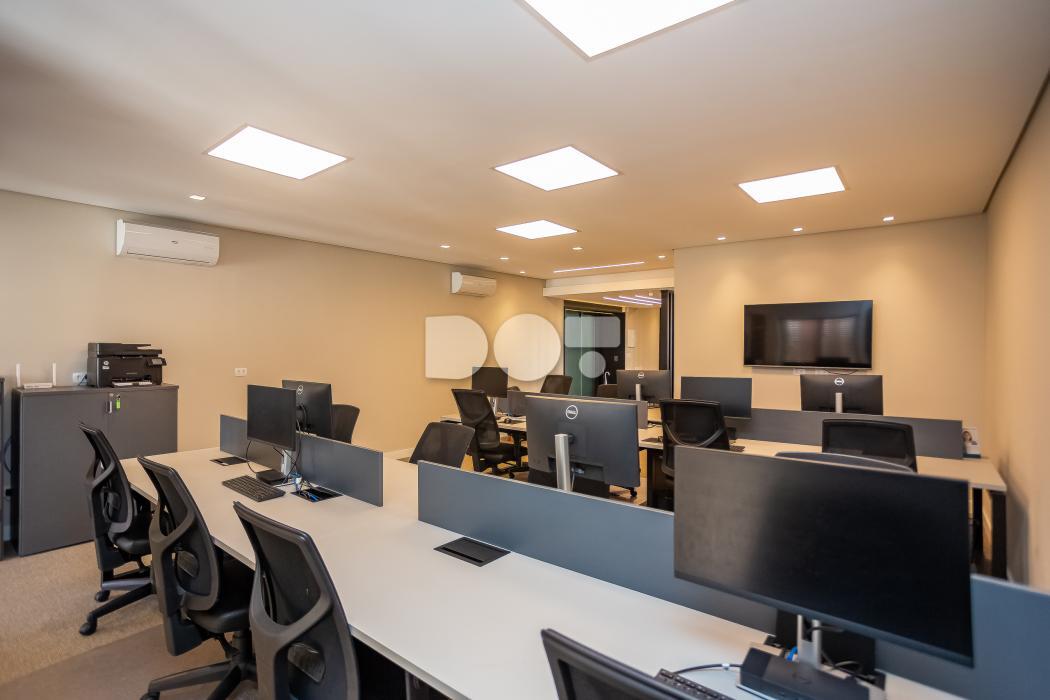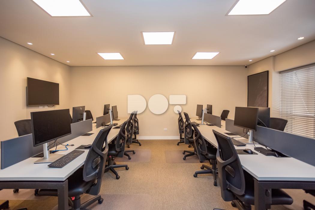 - 1 sala com 16 estações de trabalho e armários