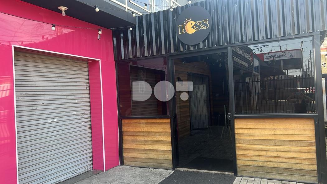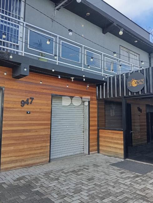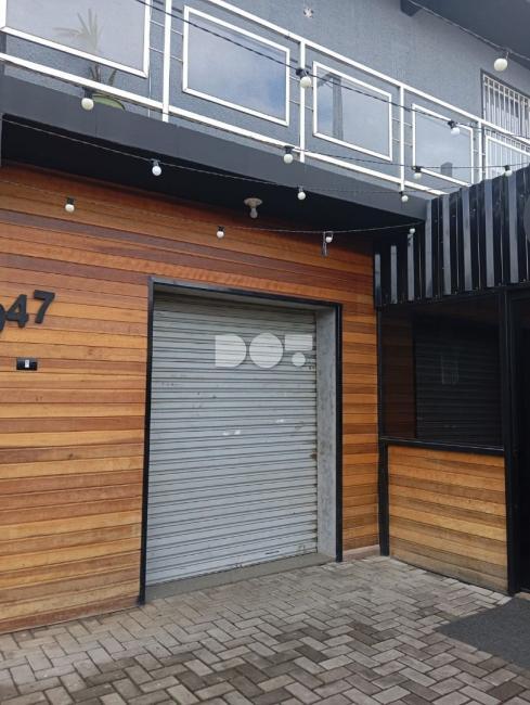 3 portas em aço, sendo duas lojas interligadas, com 1 banheiro e 1 garagem que cabe até 3 carros.