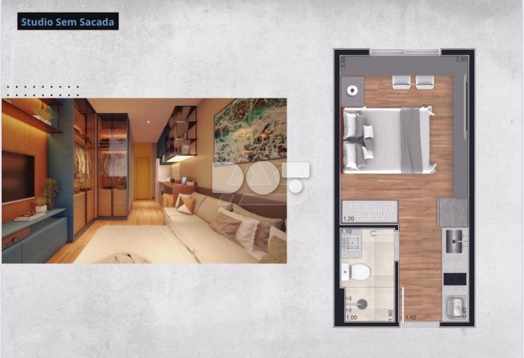 Kitnet moderna no Residencial One Life, com lançamento previsto para o segundo semestre de 2025. Localizada no bairro Água Verde, Curitiba/PR.