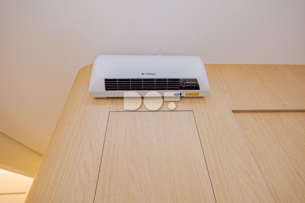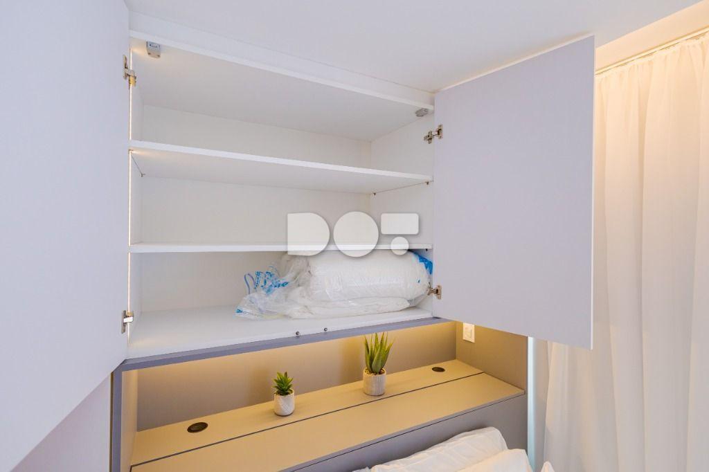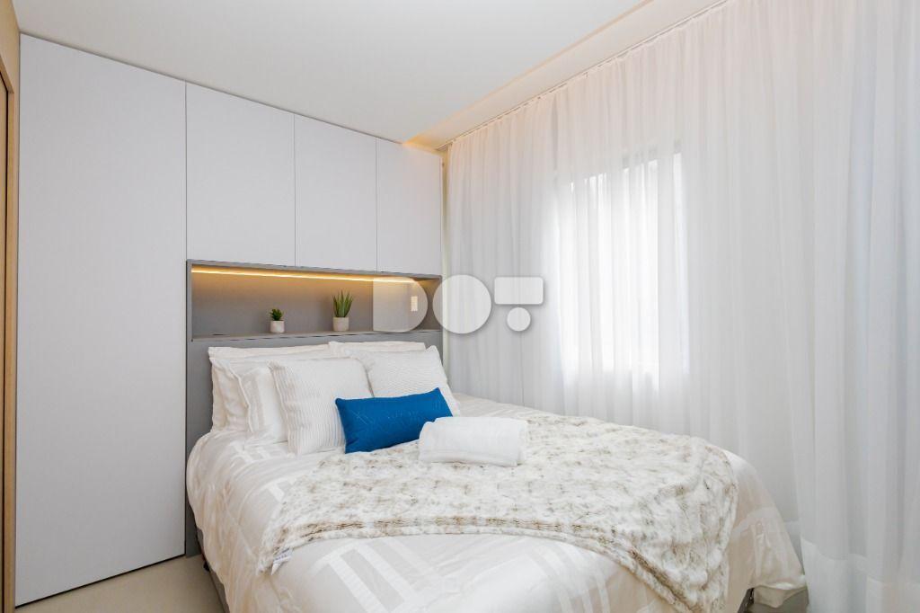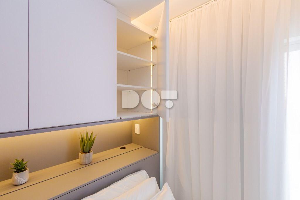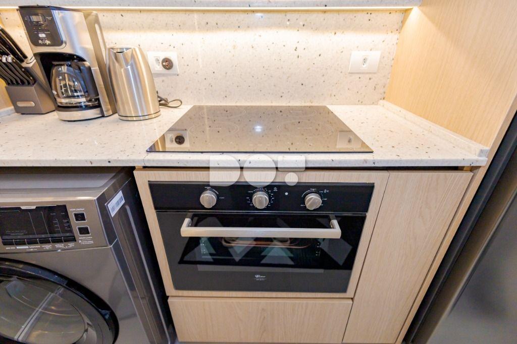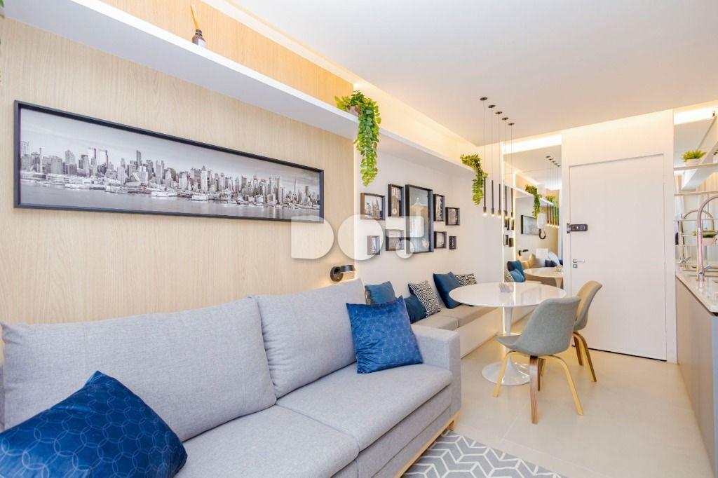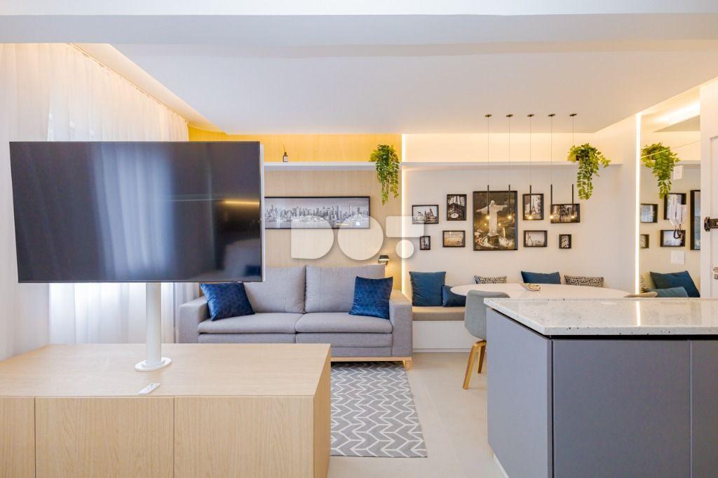Studio todo reformado com acessórios de qualidade e ótimo gosto. Cozinha planejada com móveis de primeira linha, ficando cooktop, forno e coifa. Sala conjugada com o quarto em teto em gesso e iluminação em led. No banheiro vidro em blindex. O imóvel está localizado em frente a Faculdade Evangélica Mackenzie no Bigorrilho.