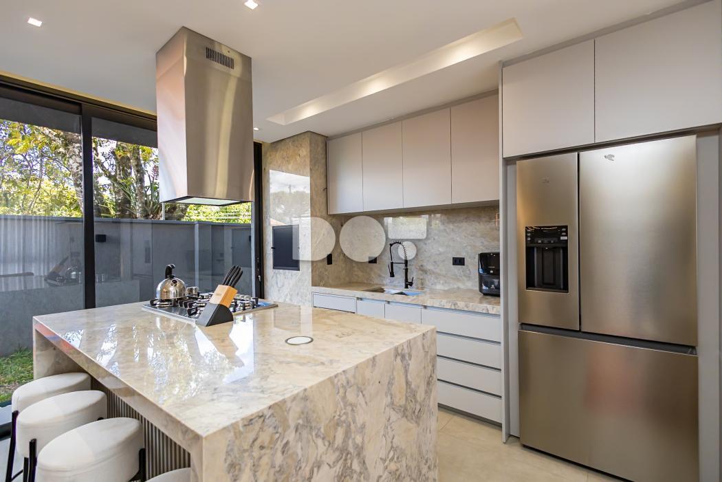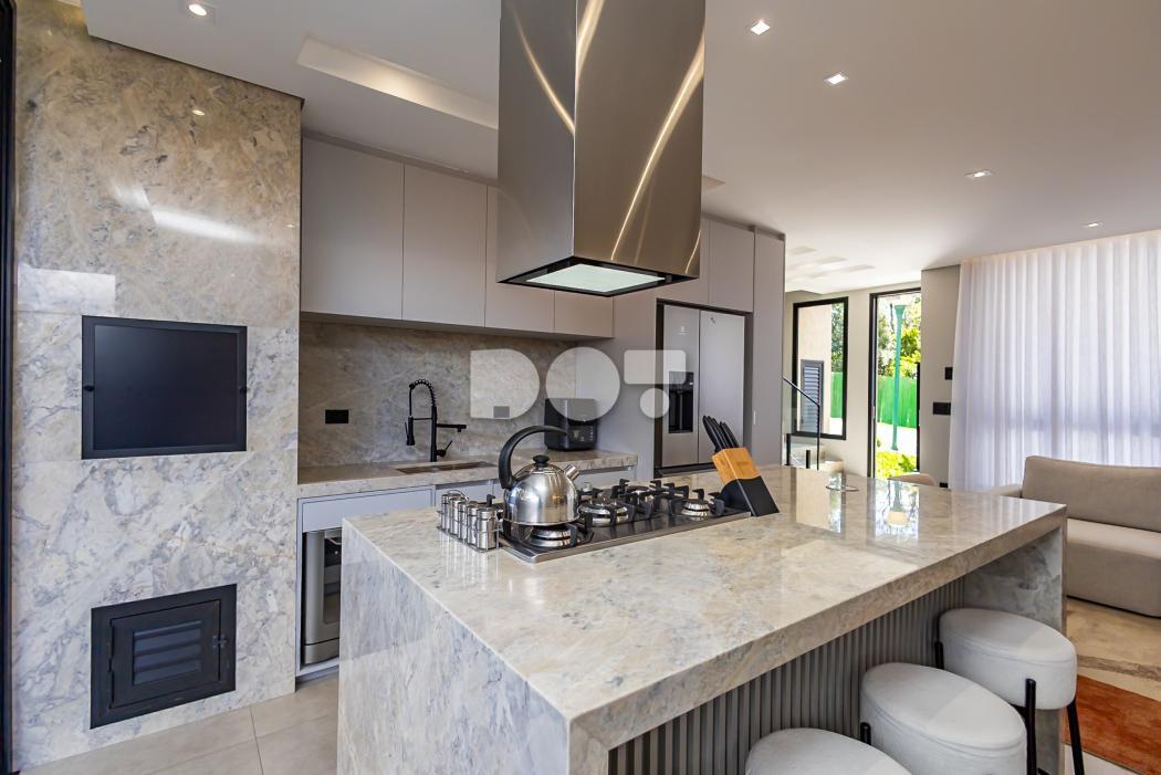 - Cozinha com ilha e churrasqueira em conceito aberto toda mobiliada e equipada com lava louças, microondas, forno, fogão e coifa