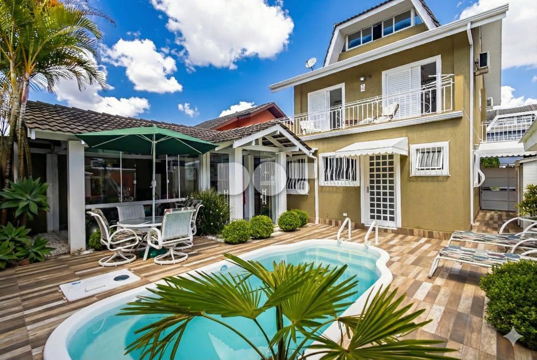 Casa cheia de estilo e personalidade em condomínio fechado. Com piscina, a área externa se integra a um espaço gourmet com churrasqueira super aconchegante - a cereja do bolo fica por conta da estrutura do telhado aparente. Os ambientes são espaçosos e ensolarados e fazem desse imóvel a escolha ideal para uma família que busca por conforto e tranquilidade.