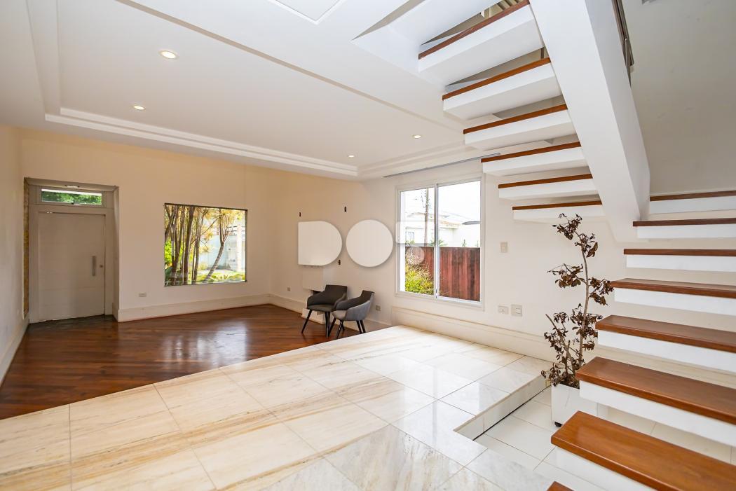 - Sala de estar com pé direito duplo e lareira