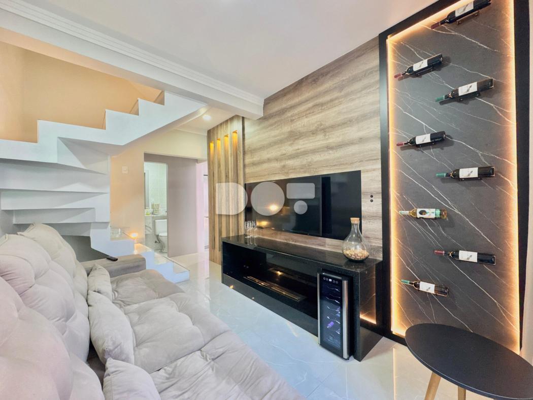 - Espaço de TV com painel e uma adega trazendo luxo e muito requinte.