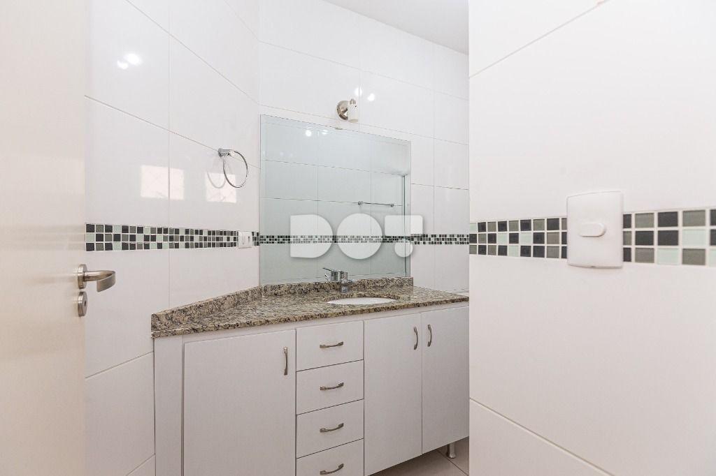 Banheiro social com armário e box blindex;